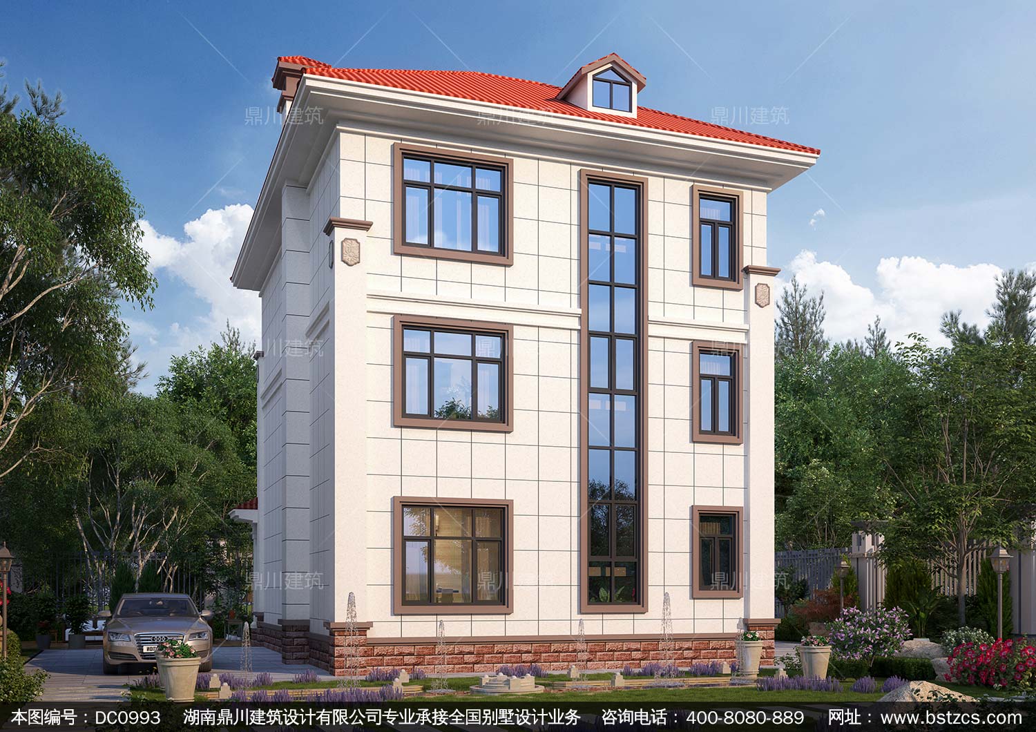歐式三層小戶型復式別墅圖紙及效果圖_農村自建房設計,鼎川建筑