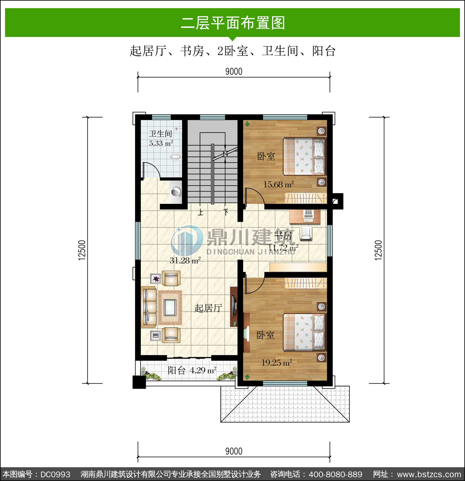 | 二 層: | 起居廳、書房、2臥室、衛生間、陽臺 | |||