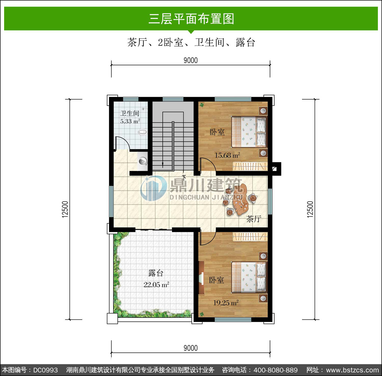 | 三 層: | 茶廳、2臥室、衛生間、露臺 | |||