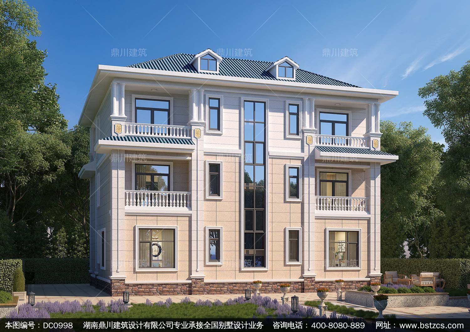 歐式三層共堂屋雙拼別墅圖紙及效果圖_農村兄弟自建房設計,鼎川建筑