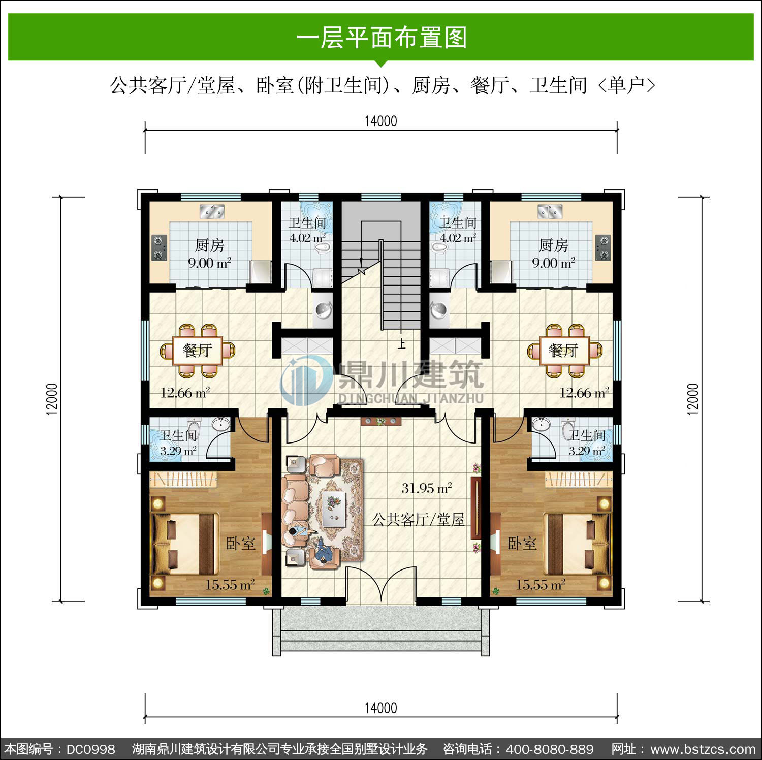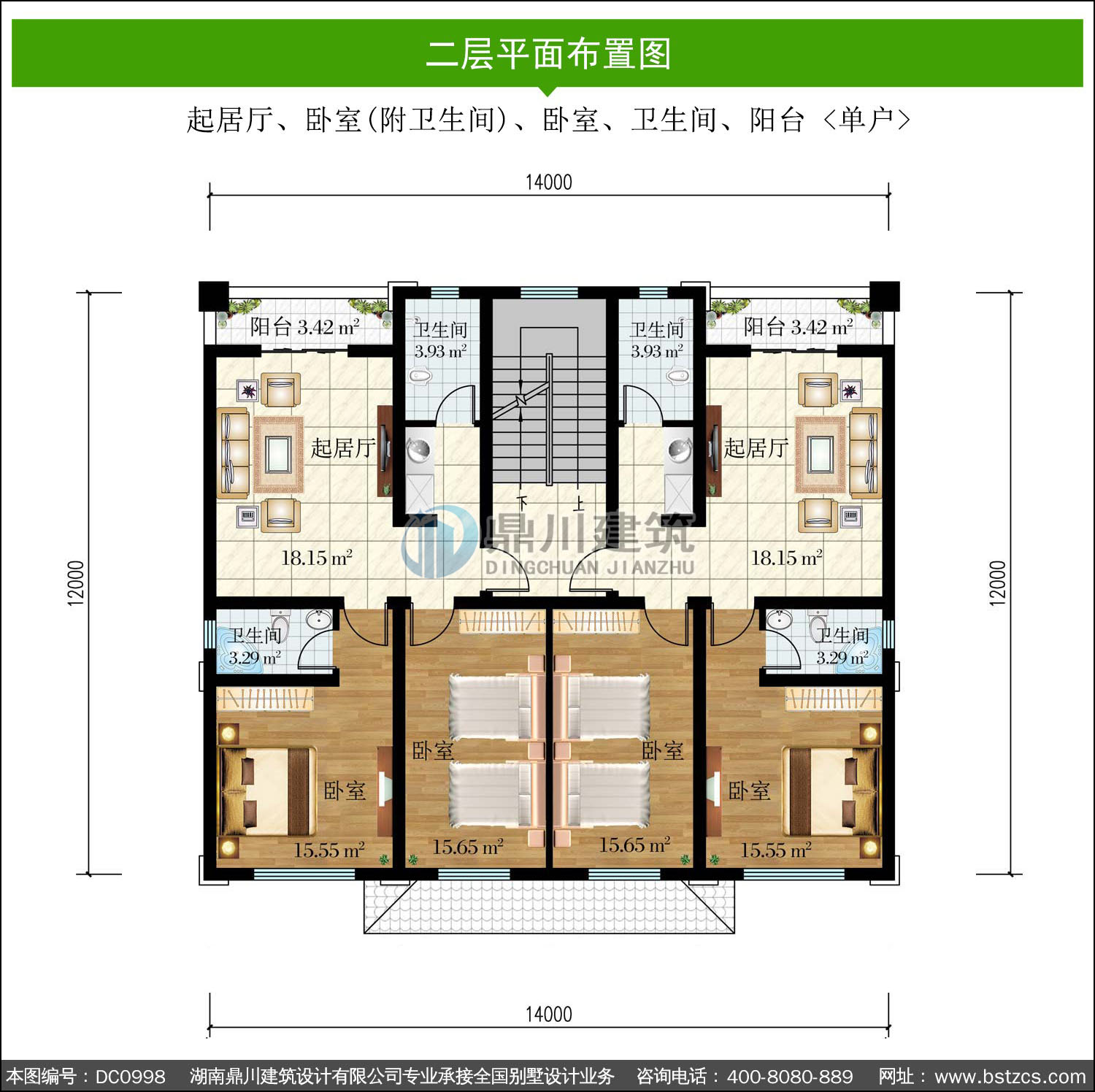 雙拼三層實用別墅圖紙及效果圖_新農村兄弟自建房設計,鼎川建筑