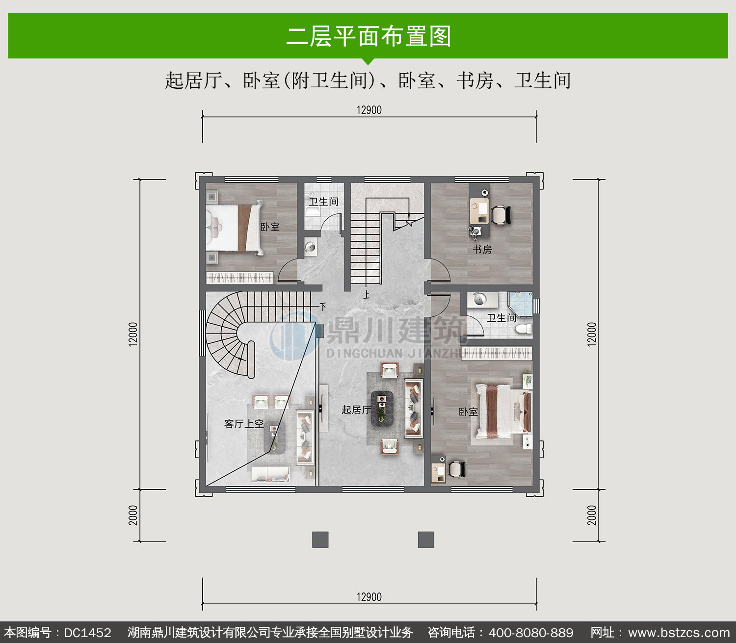 | 二 層: | 起居廳、臥室(附衛生間)、臥室、書房、衛生間 | |||