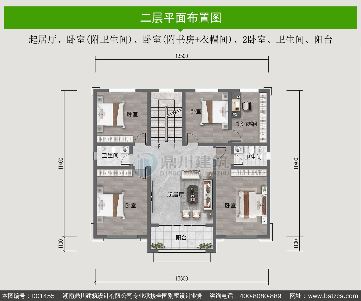 | 二 層: | 起居廳、臥室(附衛(wèi)生間)、臥室(附書房+衣帽間)、2臥室、衛(wèi)生間、陽(yáng)臺(tái) | |||