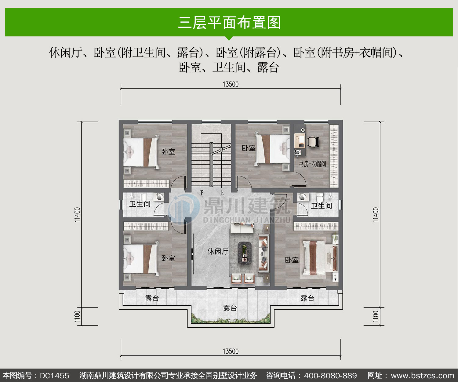 | 三 層: | 休閑廳、臥室(附衛(wèi)生間、露臺(tái))、臥室(附露臺(tái))、臥室(附書房+衣帽間)、臥室、衛(wèi)生間、露臺(tái) | |||